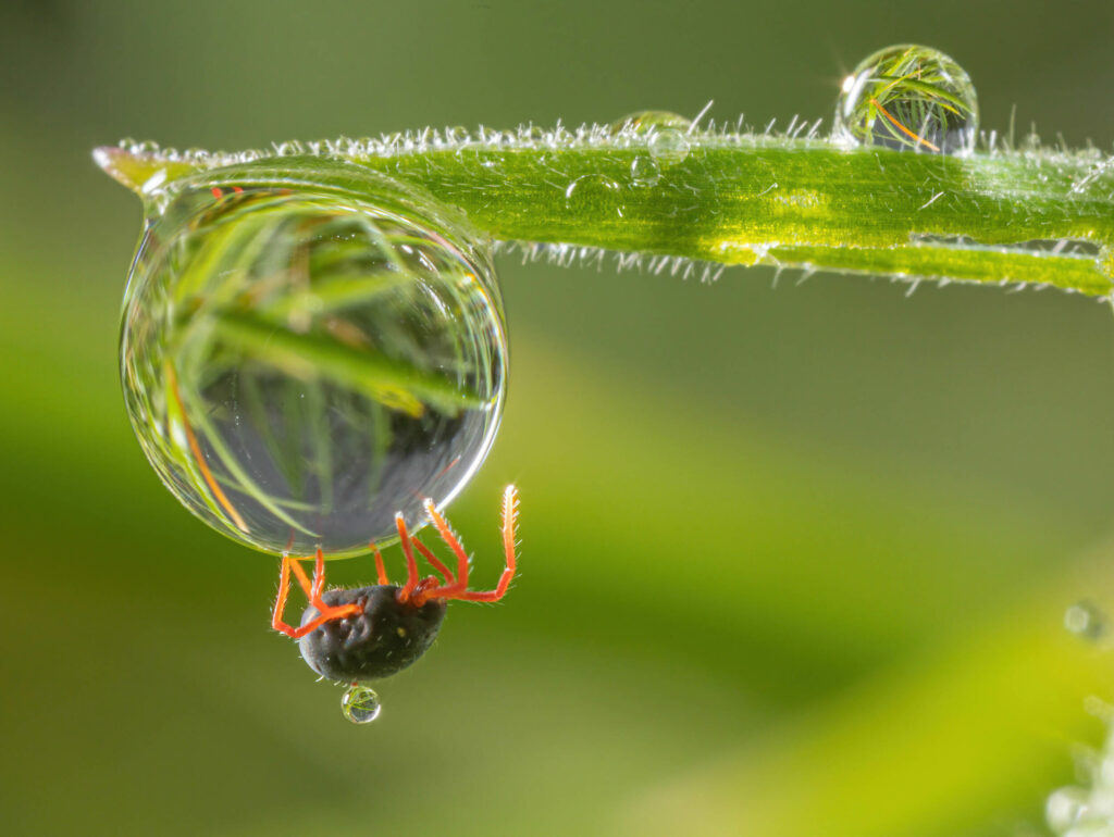 Même s'il ne pèse que quelques milligrammes, il reste pendu sous la goutte!