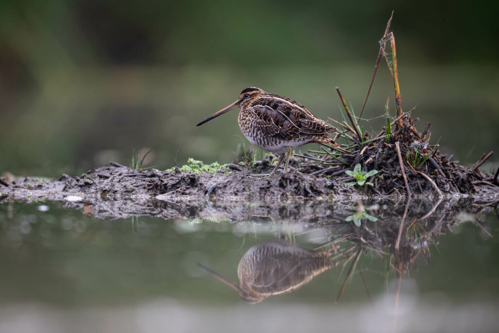 Bécassine des marais photographiée suite à une longue et lente approche en affût flottant.