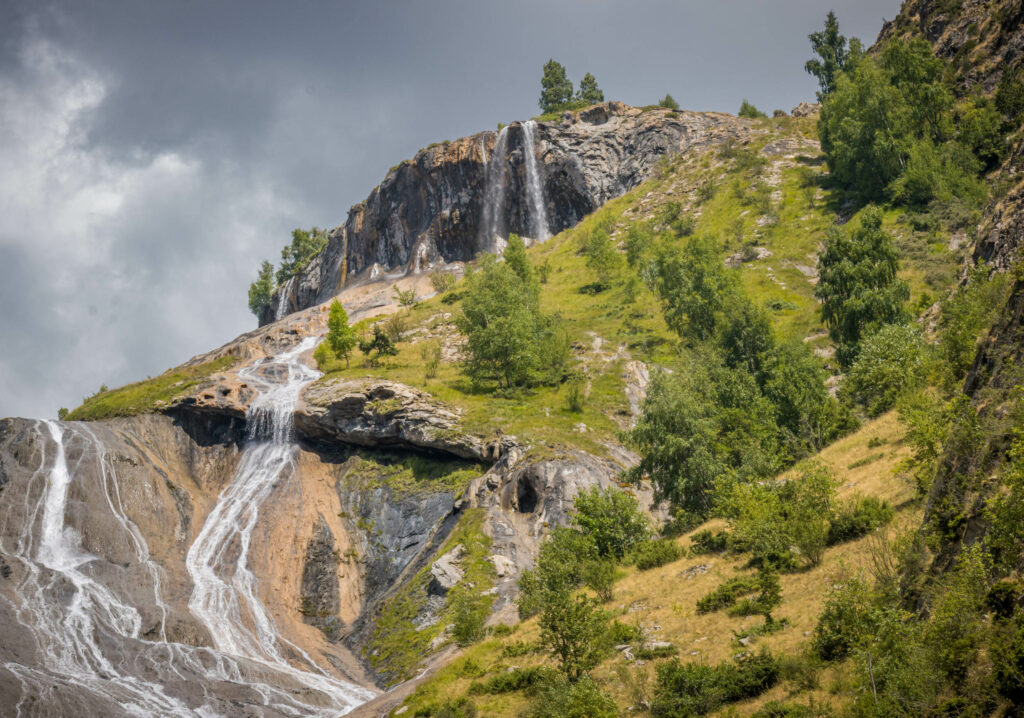 Cascades dominant le refuge des Clots. Elles surgissent d'une fontaine pétrifiante formant des concrétions de tuf.