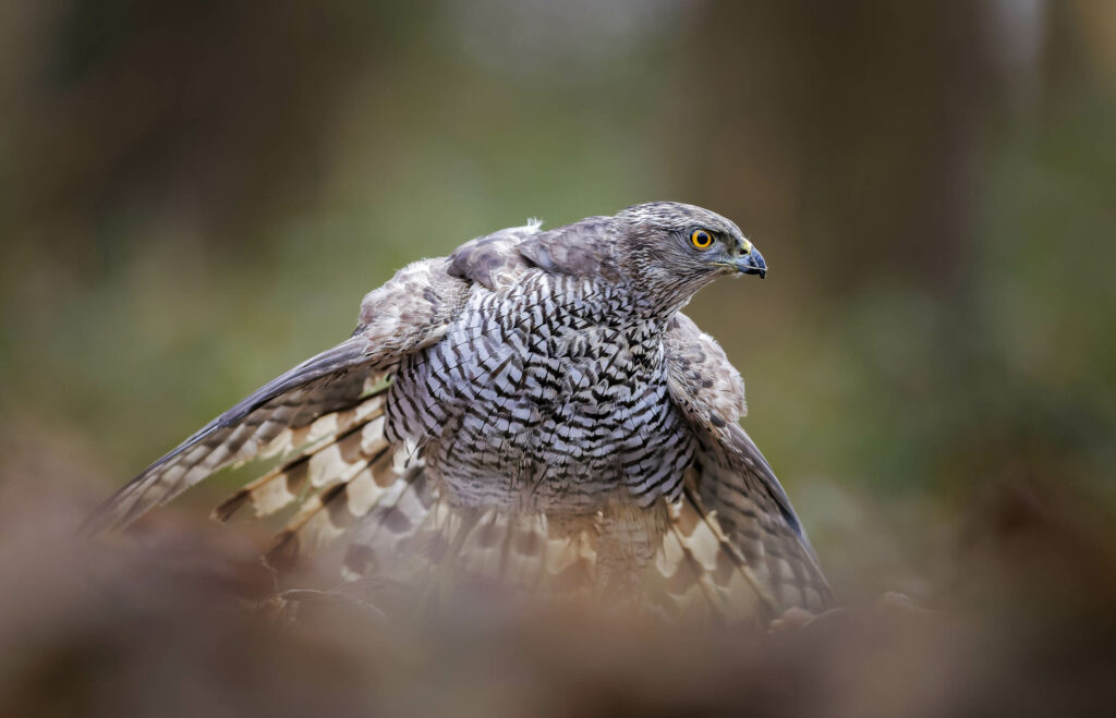 Chevêche d'Athéna photographiée en fin de journée sous affût