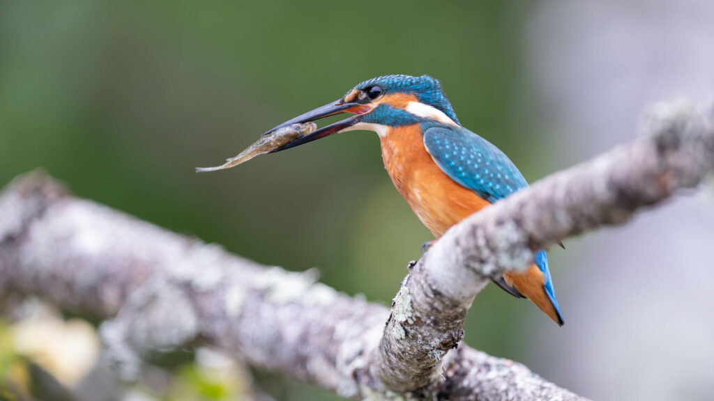 Martin pêcheur et sa proie, une petite perche arc en ciel.