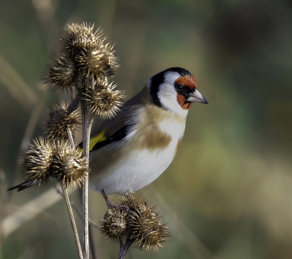 Chardonneret élégant avec son masque facial rouge vif.