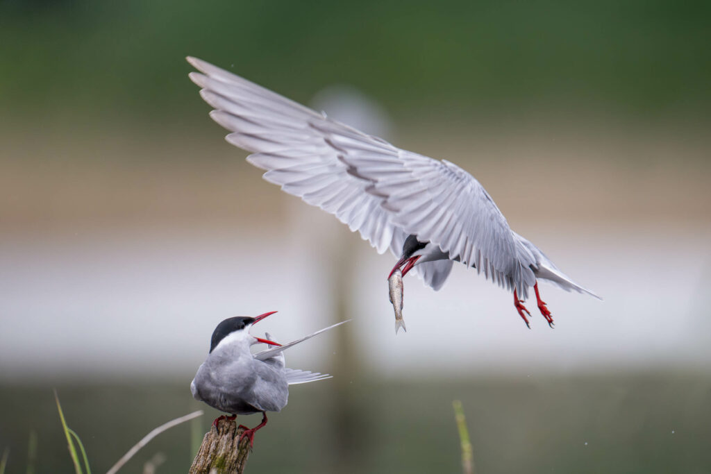 Guifettes Moustac photographiées en affût flottant sur un étang en Brenne