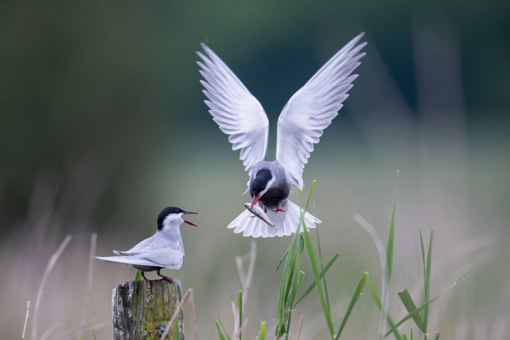 Guifettes Moustac photographiées sur un étang de Brenne en affût flottant.