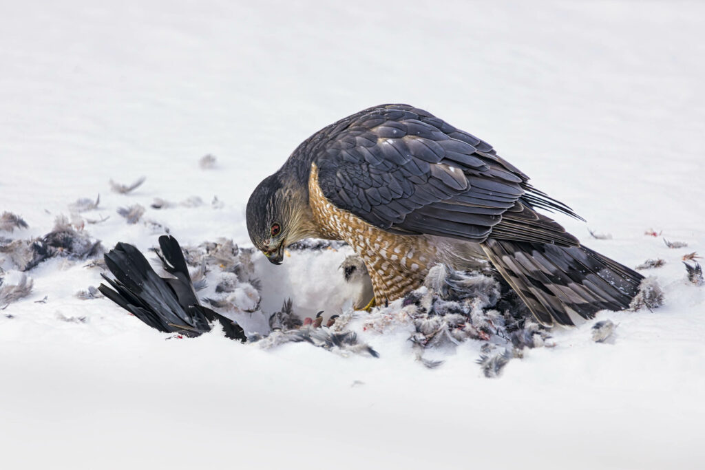 Épervier de Cooper qui a attrapé un pigeon