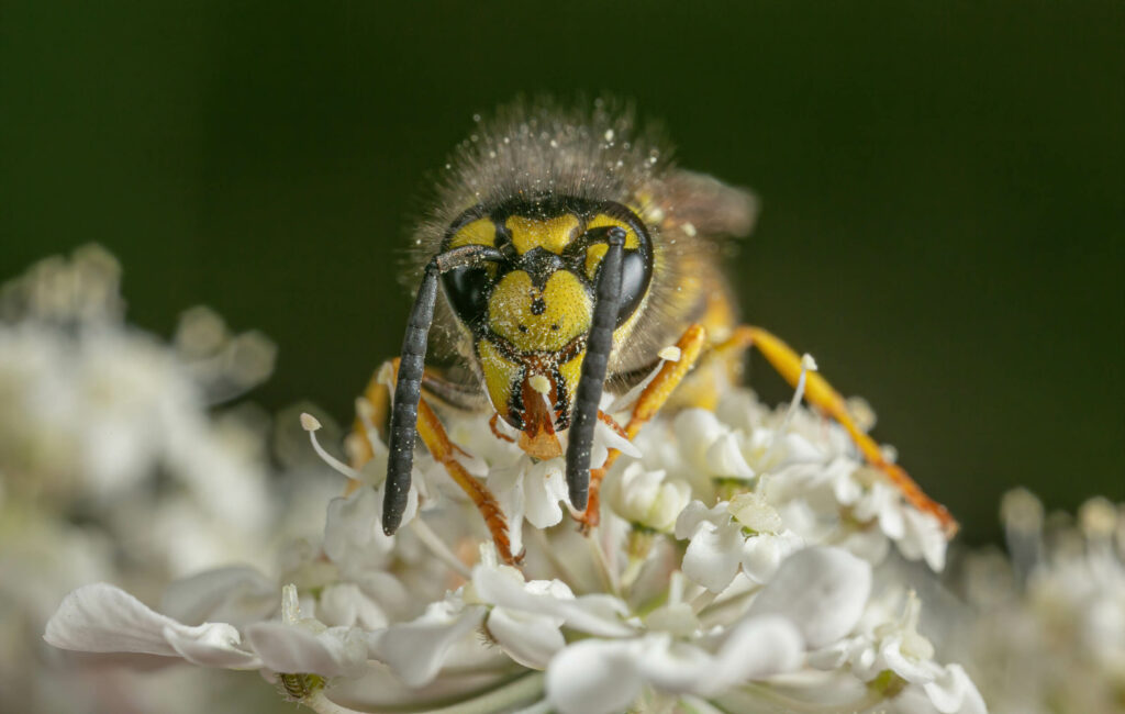 Petite guêpe sur une fleur d'ombellifère