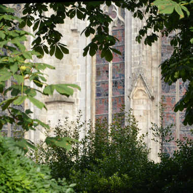 - Mots-Clés histoire, architecture, collégiale, arbre, vert, nature, gris, pierre, vitraux, vitrail, cathédrale, église, sculpure