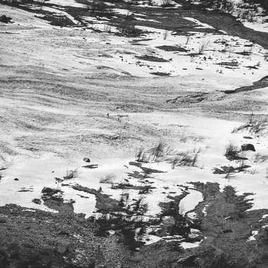 Pour les yeux attentifs, 2 promeneurs marchent sur la neige en plein centre de l'image. Ils traversent la rivière qui coule sous la neige. En espérant que celle-ci ne cède pas...