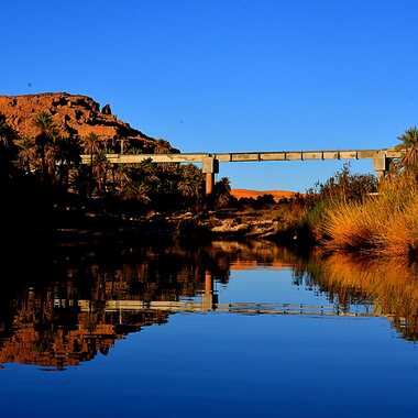 Cette photo illustre l'harmonie entre l'architecture humaine et la beauté naturelle du désert, grâce à des reflets parfaitement équilibrés qui amplifient la sérénité de la scène. Vos avis m'intéressent pour savoir comment elle