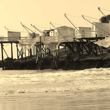 Construites sur pilotis en bois, reliées à la terre par un long ponton, ces cabanes de pêche doivent leur nom à un grand filet de pêche carré, appelé le carrelet, qui est descendu et remonté dans la mer par un système de treuil ou de palan, qui lève le filet horizontalement à l'aide d'une poulie ou d'un cordage.