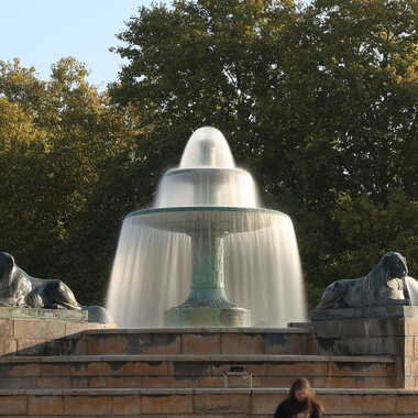 Fontaine aux Lions, devant la Grande Halle de La Vilette, près de la Porte de Pantin à Paris.