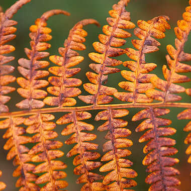 La fougère à l'automne avec son feuillage éclatant, dans des tons cuivrés et orangés.