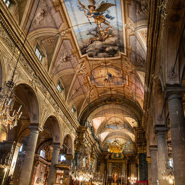 La principale et centrale, de dix mètres vingt de large, est constituée de quatre travées de cinq mètres soixante et dix. Le chœur, lui, a sept mètres quatre vingt dix de large. La voûte principale est en berceau et percée de lunettes dont les petites fenêtres laissent filtrer la lumière ; un effet irisant et doré est créé par les nouveaux vitraux posés par le service des Monuments historiques.