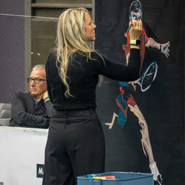 Lors de l'open de Bourg de Péage, entre deux matchs une artiste locale peint un tableau de Wawrinka en quelques minutes.