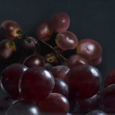 Prise de vue d'un miroir ou se reflète une grappe de raisin avec en fond un dessin sur tablette.