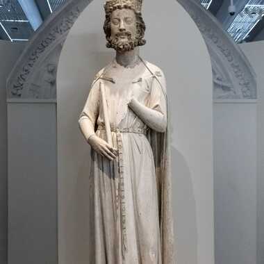 Paris (abbaye Saint-Germain-des-Prés). Statue rétrospective du rois mérovingien Childebert. Entre 1239 et 1244. Pierre calcaire anciennement polychromée.
