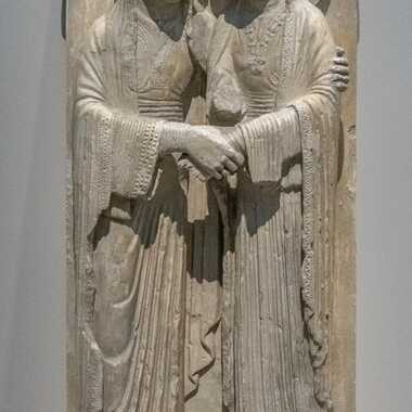 Sainte Élisabeth et la Vierge de la Visitation, détail du tympan du portail de droite du « portail royal » de la cathédrale de Chartres, vers 1140 (reproduction). Moulage en plâtre.