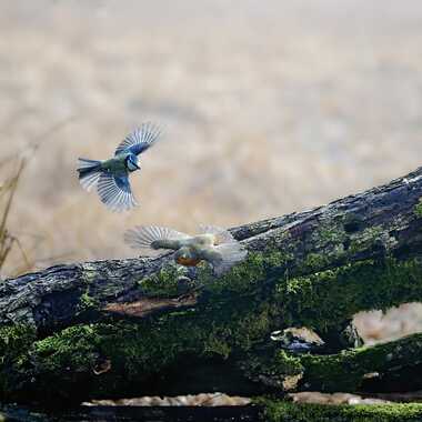 Une mésange chasse un rouge-gorge.