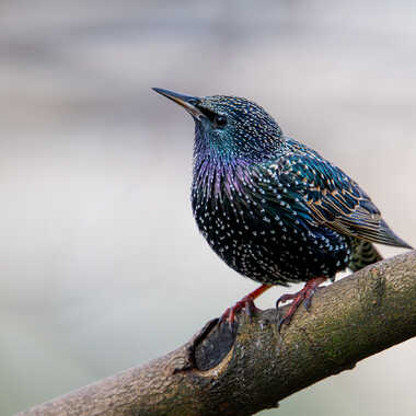 En le regardant de près, l'Étourneau sansonnet se distingue par son magnifique plumage aux reflets vert et violet, moucheté de points blancs en forme de cœur.