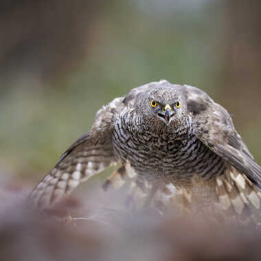 Autour des Palombes femelle de 2 ans. Ses exigences territoriales sont incompatibles avec de fortes densités. il n’est ni le concurrent du chasseur, ni l’ennemi du colombophile. L’Autour est sédentaire, protégé en Europe occidentale, et est le seul prédateur potentiel des Corvidés dont l’accroissement en surnombre cause bien des problèmes à certains petits passereaux. Prise vers 17:30 avec très peu de lumière.