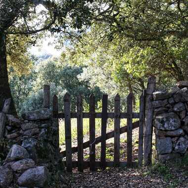 Photo prise sur l'un des nombreux sentiers "Mare e Macchia" (mer et maquis) que compte la Corse. Ce sont des itinéraires qui démarrent à faible ou moyenne altitude et permettent de rejoindre la mer. Chemin faisant, on passe sans cesse de sous bois à des vues imprenables sur la méditérranée. Ils sont entretenus, balisés et répertoriés par le parc naturel régional de Corse.
