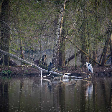 Fin d'aprés midi sur une petite ile servant de réserve naturelle au fond de l'étang.