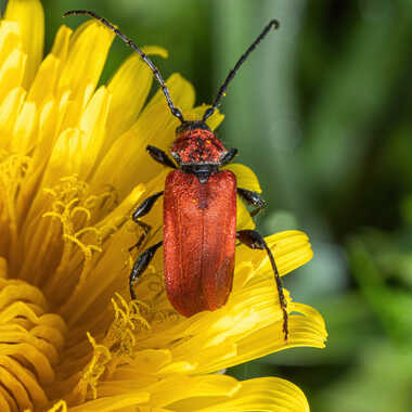 Une Callidie rouge sang sur une fleur de Pissenlit!
