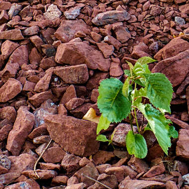 Jeune pousse de noisetier(?) dans minerai de fer