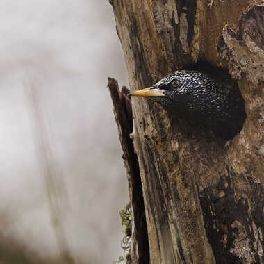 Un Etourneau sansonnet (avec un extender 1.4) pour ne pas déranger et être vue mais zone +/- sombre et aborder avec beaucoup de branche, il à falut trouver un compromis de positionnement ;-)