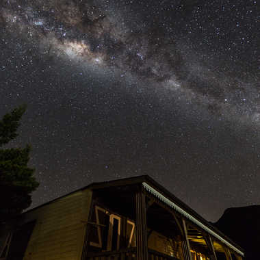 Voie lactée au dessus du village de Mafate sur l'île de la réunion. Village uniquement accessible à pied après 6h de marche à travers de Cirque