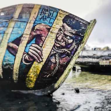 Une oeuvre souvenir que des artistes de street-art ont réalisée dans un cimetière de bateaux.