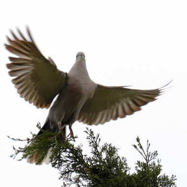 Toujours une de mes sympathiques volatiles qui quitte rapidement le sommet d'un cyprès.