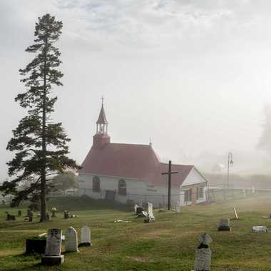 Chapelle et Cimetière de Tadoussac sous le brouillard d'un matin de septembre 2016