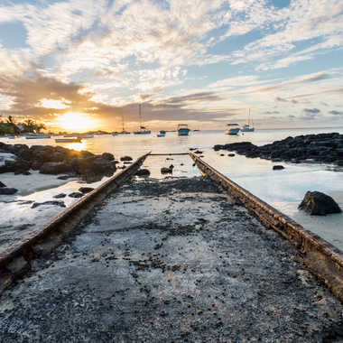 - Mots-Clés rail;bateau;soleil couchant