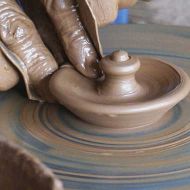 - Mots-Clés potier, poterie, mains, terre, bleu, tour de potier, mouvement