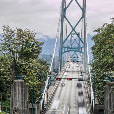 Le lion Gate Bridge à Vancouver...Une photo classique mais on ne peut y résister en découvrant ce pont, quelque soit la météo...Une pose longue pour rester un peu moins classique.