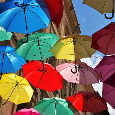 La rue des Fourbisseurs s'est vêtue d'une multitude d'ombrelles le temps d'un festival