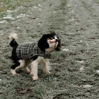 Magie chienne de moins de 2 ans qui se secoue au milieu d'une rafale. Photo ratée ou surréaliste avec un oeil à la Dali !