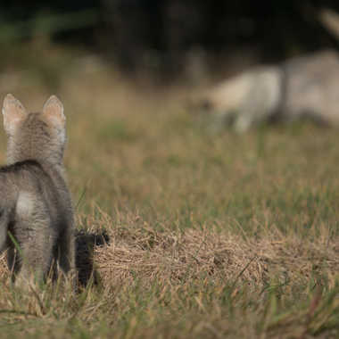 Apprentissage de la chasse par un chiot auprès de sa mère - Chien-loup de Saarloos.