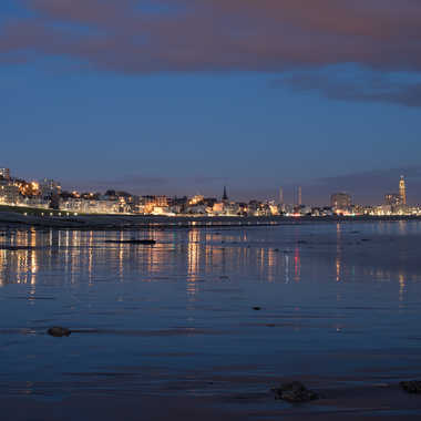 - Mots-Clés nuit, bleue, havre, plage, ville, mer, sable, reflets