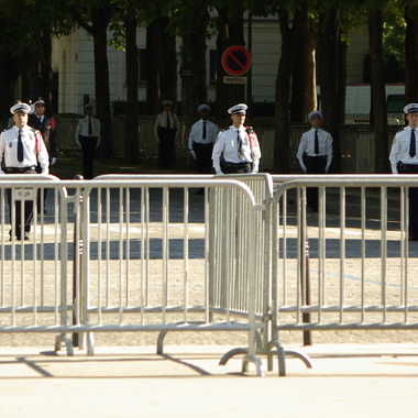J'aime ces alignements croisés entre les barrières de sécurité et les agents de police qui se sont mis au garde à vous quand la Marseillaise a retenti.
