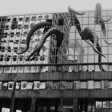 La pieuvre de Design in Air, passant ses bras dans un immeuble de bureaux