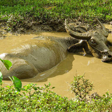- Mots-Clés buffle, boue, Laos, sale