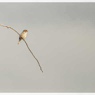 À peine plus petit que son congénère le Moineau domestique auquel il convient de le comparer, le Moineau friquet se distingue surtout à deux caractéristiques. Tout d'abord, l'espèce ne présente pas de dimorphisme sexuel. Le mâle a simplement des teintes un peu plus vives que sa partenaire. Ensuite la tête, qui est très différente. Elle est d'un brun-marron à nuance brique sur la calotte et la nuque jusqu'aux parotiques. La joue est blanche avec un point noir bien visible sous l'œil. L'œil à iris brun est peu visible car noyé dans une zone noire incluant les lores. Noirs également sont le bec et une étroite bavette gulaire.