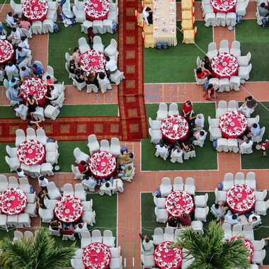 - Mots-Clés repas, mariage, terrasse, convive, vue aérienne