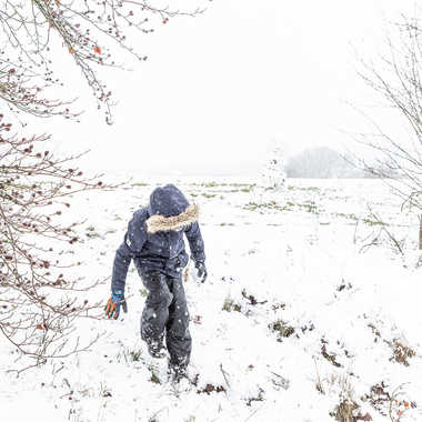 Fin d'une après-midi à jouer dans un champ enneigé.