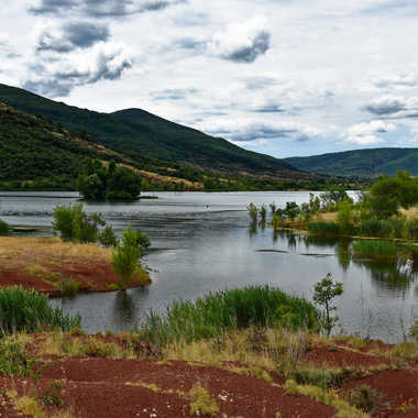 - Foto-bot rivière, paysage, Lac, eau, canal, Forest, plan d'eau, montagne, au bord du lac, montagnes, rive, réflexion, Étain, Marron Chocolat, Noir, Brou de noix, Gris de lin, Bleu fumée