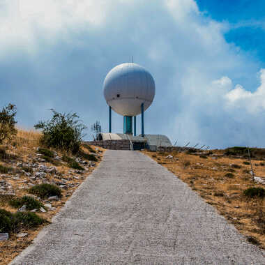 La visite longe le plateau calcaire ouvert entre Gourdon et Caussols. Il s’agit d’un beau et large chemin en béton coulé au-dessus des câbles enterrés jusqu’à la station radar de l’aviation civile.