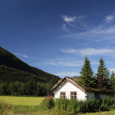 - Mots-Clés maison de bois, abandonnée, sapin, beau ciel, montagne, prairie