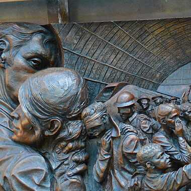 Elle comporte également une frise de reliefs en bronze fort intéressante autour de son socle.